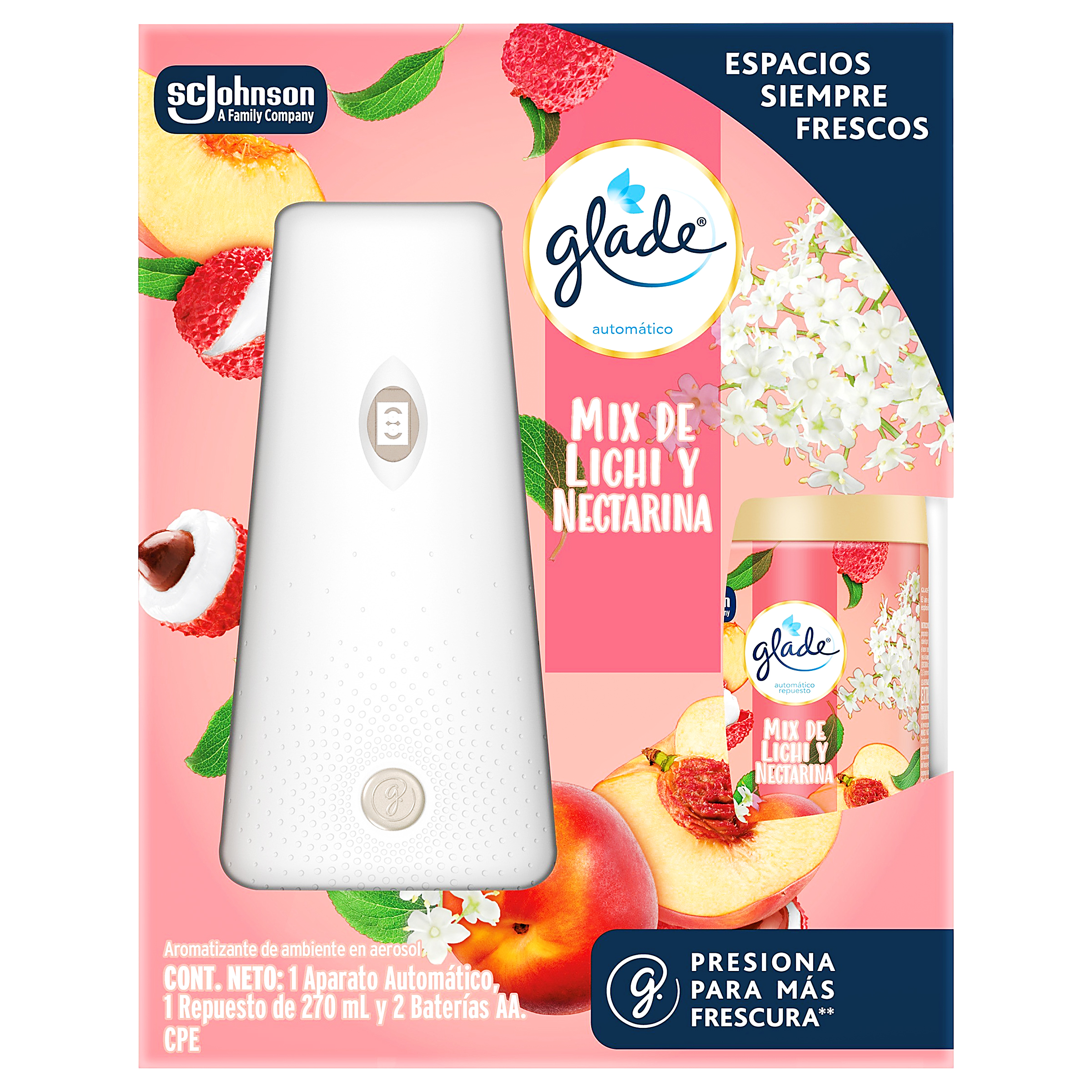 AROMATIZANTE DE AMBIENTE GLADE SC JOHNSON OLOR MIX DE LICHI Y NECTARINA EN AEROSOL 4.00 PIEZA(S)